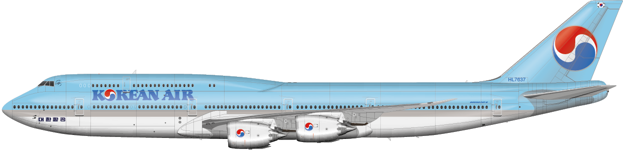 The Boeing 747-8 was launched in 2005 as an upgrade to the 747-400 with new engines, updated flightdeck and wings. The aircraft uses the same engine and cockpit technology as the Boeing 787, hence the -8 name. The fuselage is stretched by 5.6m and the wing by 4m with raked wingtips rather than the winglets on the -400. The engines used are the General Electric GEnx-2B67. There are two versions of the aircraft, the 8F which is the cargo version with 16% more capacity than the -400 and the passenger version, the -8i or Intercontinental. The first aircraft was delivered to Lufthansa in May 2012. The Korean Air Boeing 747-8B5 is powered by 4 x General Electric GEnx-2B67 engines and is configured for 6 First Class, 48 Business Class and 314 Economy seats. HL7637 S/N40909 LN:1529 was delivered on 27th June 2016. https://www.cockpitrevolution.com/shop.html#!/Boeing-747-8-Korean-Air/p/129255964/category=30261208